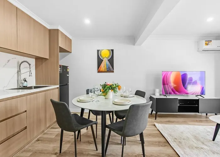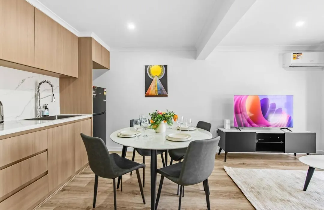Spacious Studio Twin Q Beds Sleep 4 Budget Friendly Brisbane villa bevindt zich op 6-minuten wandelafstand van Southside International Church en biedt gemakkelijke toegang tot tal van toeristische plekken.